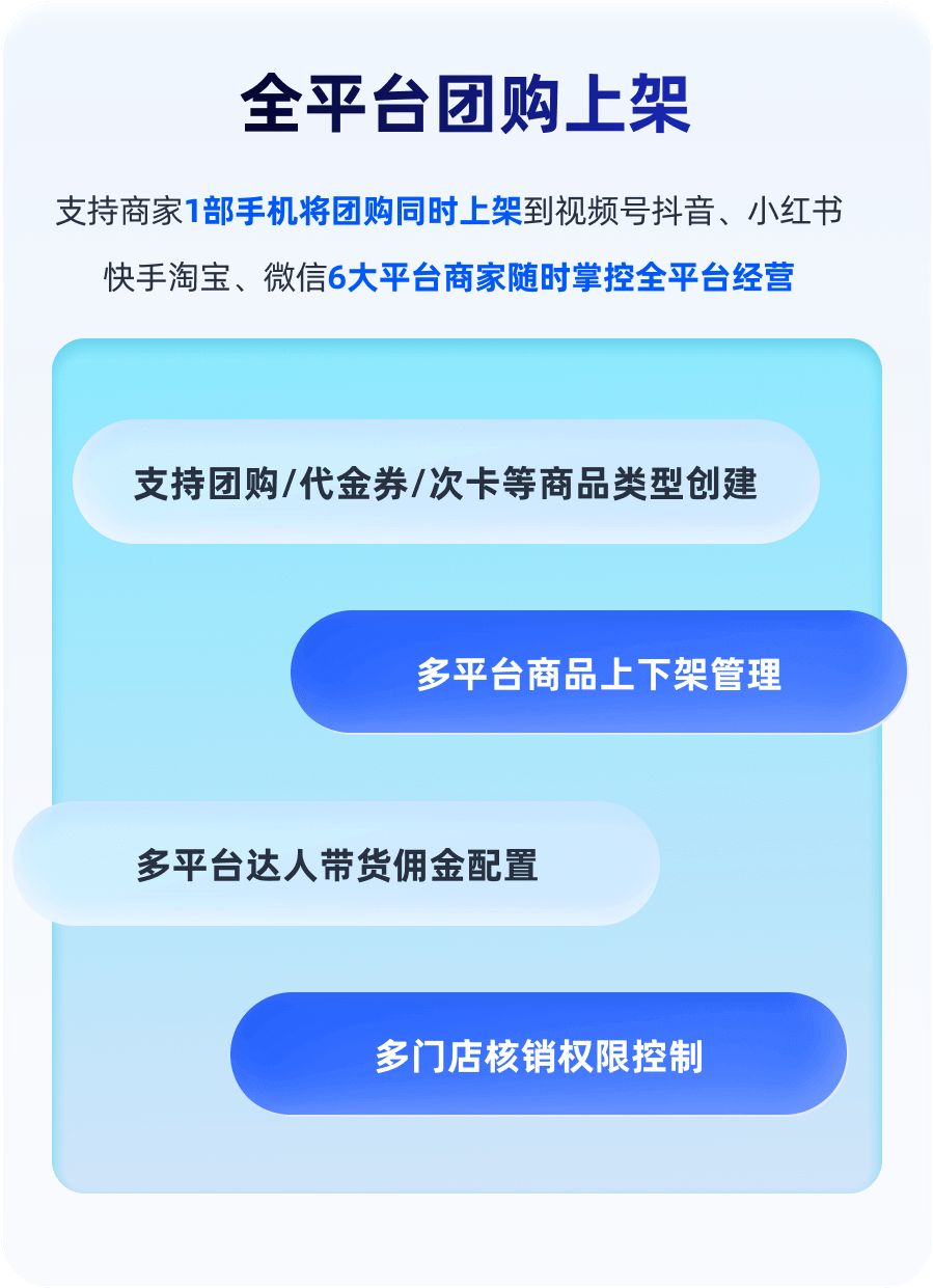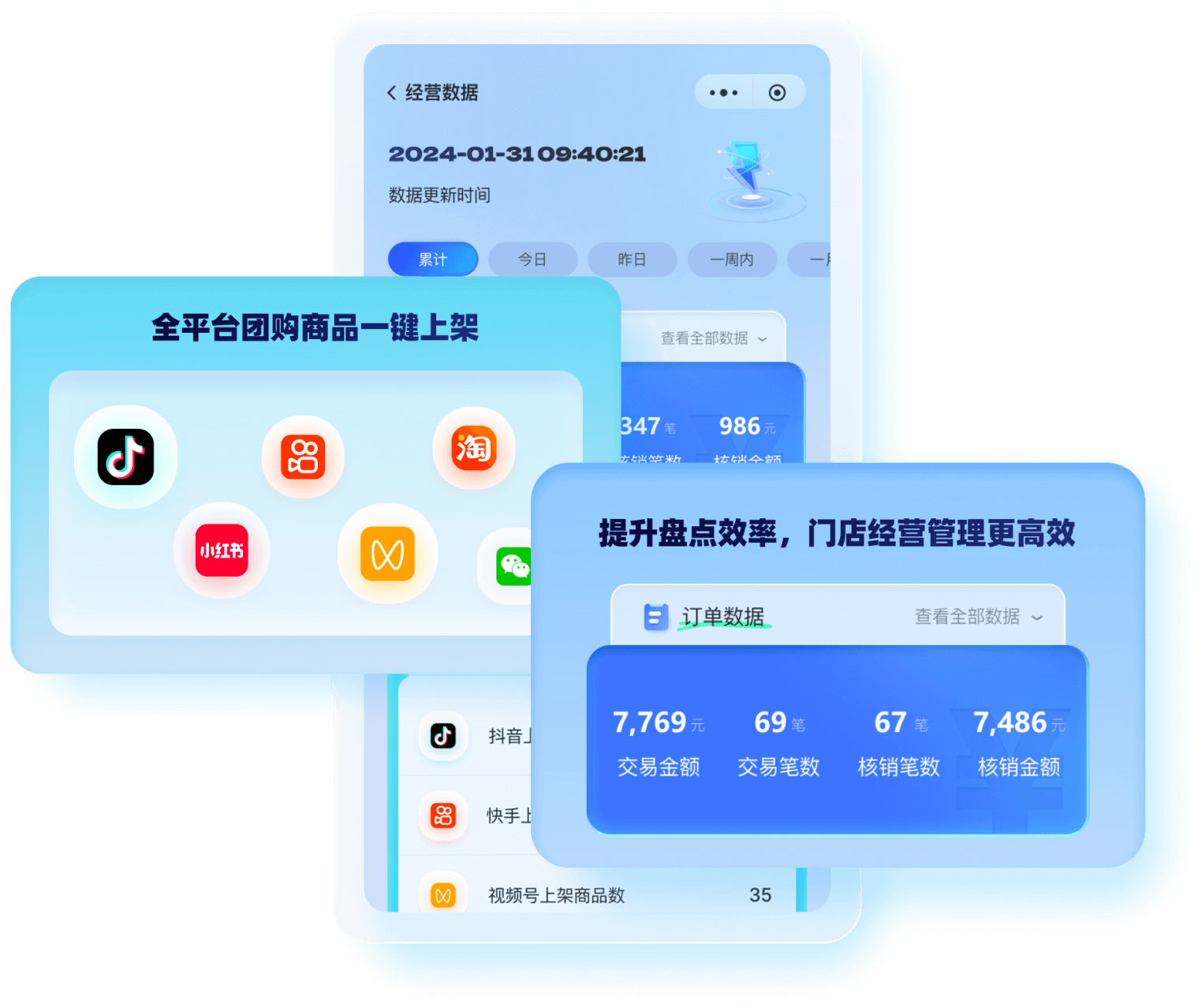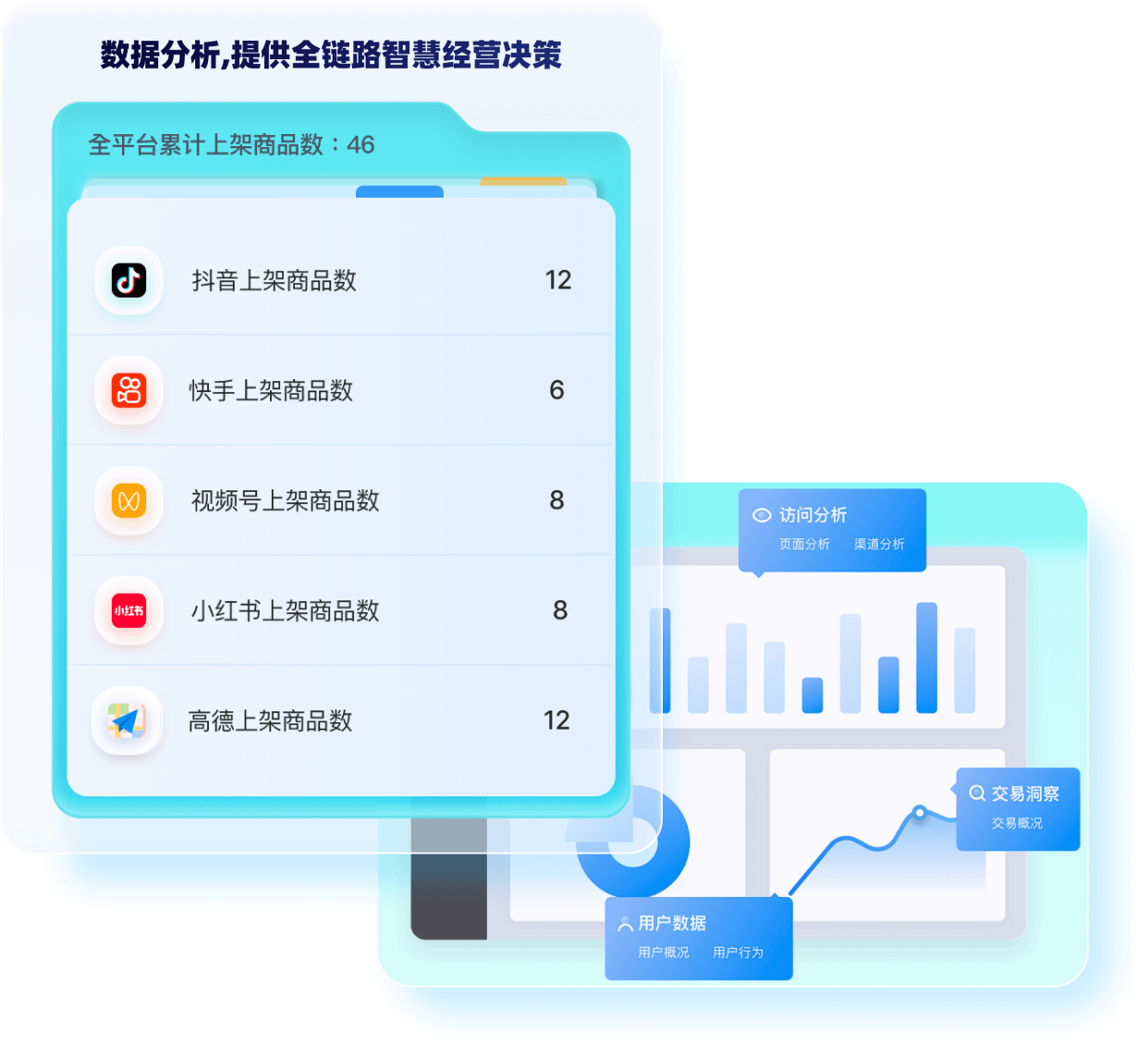 呈现多渠道商品上架、售卖、核销等经营数据,助力商家经营决策